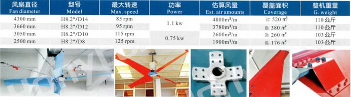 3、輕質(zhì)機(jī)架直徑在4300-3600mm,和直徑在3050-2500mm的大吊扇采用更輕型的機(jī)架,1.1KW和0.75KW的電機(jī)使得該系列風(fēng)扇可以更適用中低空間的商業(yè)場(chǎng)所。