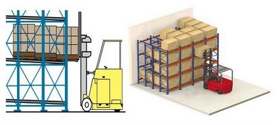 Push-back貨架又稱壓入式貨架,是在前后梁間以多層臺(tái)車重疊相接,從外側(cè)將疊棧貨物置于臺(tái)車推入,后儲(chǔ)存之貨品會(huì)將原先貨品推往里面。