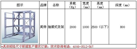 四、抽屜式貨架常規(guī)表