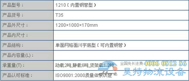 川字型內(nèi)置鋼管塑料托盤描述: