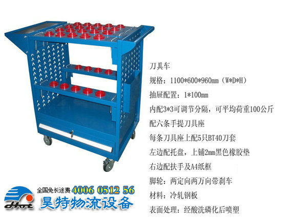 適用于加工車間、維修車間等場(chǎng)合,可分類放置刀具,并可靈活移動(dòng)方便取用。