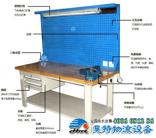 (2)主體框架下配有調(diào)節(jié)腳可適當(dāng)調(diào)節(jié)工作臺(tái)的高度,工作臺(tái)上可預(yù)留電纜配置盒并具有若干組多功能電源插座,方便搭配照明系統(tǒng),非常方便。
