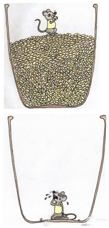 啟示:貪婪是生命的陷阱,貪得越多陷得越深。就像這只老鼠,最終被貪欲斷送了性命。