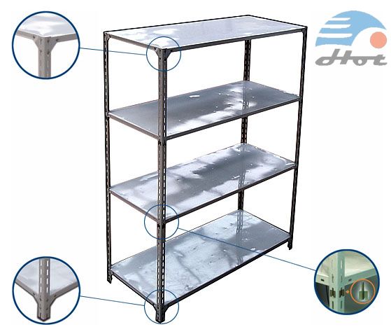 1、貨架立柱:由等邊角鋼雙邊沖孔制成,孔距離以50mm距離沿直線排列,立柱孔用來掛接層板之用;