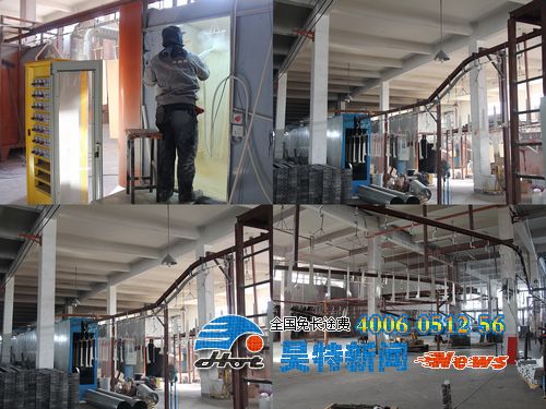 噴砂處理——吹塵——水洗(要求工件表面無灰塵、無油和銹)——烘干——噴涂(要求均勻,無露底現(xiàn)象)——流平(物理過程)——固化(180—220℃)——冷卻——包裝。