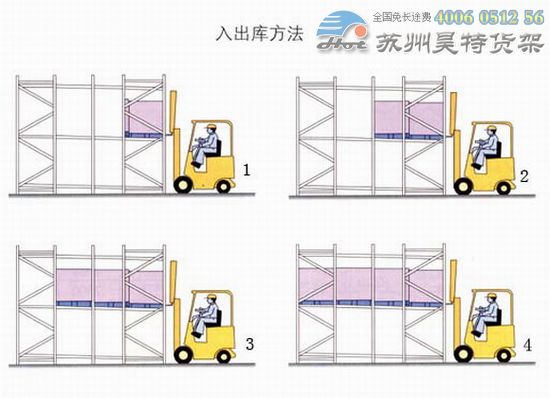 后推式貨架又名壓入式貨架——是在前后梁間以多層臺車重疊相接,從外側(cè)將疊棧貨物置于臺車推入,后儲存之貨品會將原先貨品推往里面。