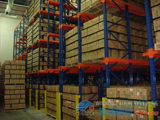 貫通式貨架多用于乳業(yè)、飲料等食品行業(yè),冷庫中也較為多見。貫通式貨架:是一種不以通道分割,連續(xù)性的整體性貨架;貫通式貨架采用托盤存取模式、適用于存放品種單一,大批量的貨物;與托盤貨架相比、倉庫利用率可達(dá)到80%左右,倉庫利用空間率可提高30%以上,是存儲效率最高的貨架。在支撐導(dǎo)軌上,托盤按深度方向存放,一個緊接著一個,貨物存取從貨架同一側(cè)進(jìn)出,先存后取、后存先取,平衡重及前移式叉車可方便地駛?cè)胴浖苤虚g存取貨物。投資成本相對比較低,適用于橫向尺寸較大,品種較少,數(shù)量較多,常用來儲存大批相同類型貨物,由于其存儲密度大對地面空間利用率較高,常用于冷庫、食品、煙草等存儲空間成本較高的倉庫。