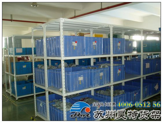 輕型貨架是相對“托盤貨架”而言,一般采用人力(不用叉車等)直接將貨物(不采用托盤元)存取于貨架內(nèi),因此貨物的高度、深度較小,貨架每層的載重量較輕。一般,該貨架的立柱采用薄鋼板(δ=1—2.5mm)冷彎沖孔而成,其截面呈三角形,故又稱“帶孔角鋼貨架”。為提高載重量,也有截面呈開口方形。貨架構(gòu)件間的連接有螺栓連接和插接兩種。其特點是結(jié)構(gòu)簡潔、自重輕、裝配方便,廣泛應用于工廠企業(yè)、商店、辦公室、廚房等。