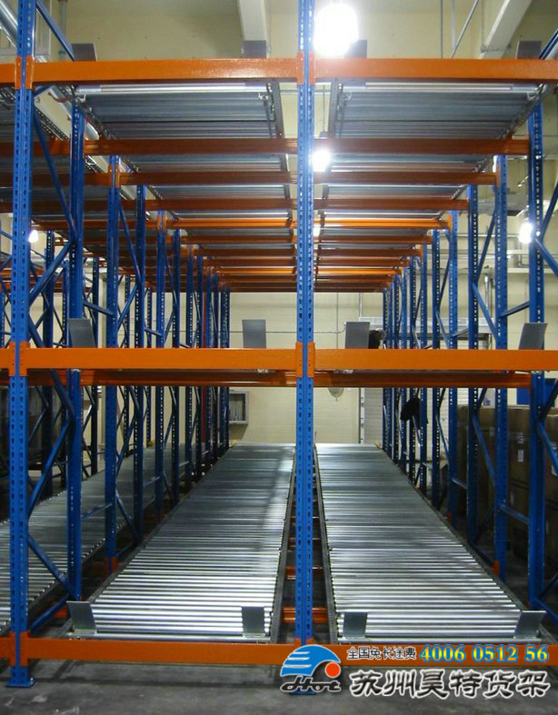適合先進(jìn)先出、流量較大的產(chǎn)品。利用滾軸滑動(dòng)使貨物達(dá)到自動(dòng)存貨流轉(zhuǎn),空間利用率達(dá)85%。適合冷庫,物流配送中心等大型倉庫管理使用。普通平衡式叉車可操作。