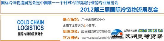 國際冷鏈物流展覽會(huì)是南中國唯一一個(gè)針對冷鏈物流行業(yè)的專業(yè)展覽會(huì)。國際冷鏈物流展覽會(huì)為食品生產(chǎn)商、食品分銷商、食品加工、全球零售商、快餐連鎖集團(tuán)、食品用具供應(yīng)商、食品服務(wù)供應(yīng)商、食品雜貨商、酒樓、酒店、藥品冷貯與運(yùn)輸商以及第三方物流公司、協(xié)會(huì)、政府部門等提供一個(gè)理想貿(mào)易、交流平臺。同時(shí),也為冷庫技術(shù)、冷藏車輛運(yùn)輸、空運(yùn)、海運(yùn)、包裝設(shè)備、搬運(yùn)設(shè)備、物流設(shè)備、冷鏈配送中心提供良好的商機(jī)。