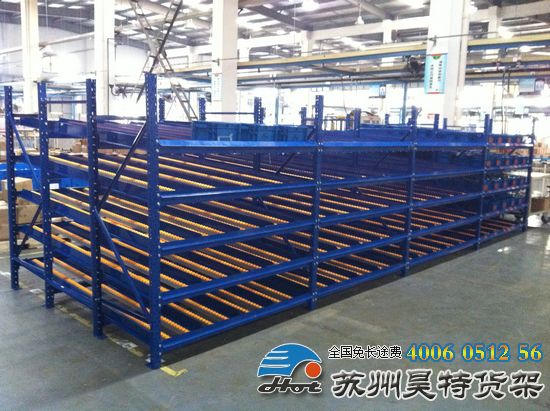 流利式貨架特點(diǎn):流利條貨架是將貨物置于滾輪上,利用一邊通道存貨,另一邊通道取貨。料架朝出貨方向向下傾斜,貨物在重力作用下向下滑動(dòng)?蓪(shí)現(xiàn)先進(jìn)先出,并可實(shí)現(xiàn)一次補(bǔ)貨,多次揀貨。流利架存儲(chǔ)效率高。適合大量貨物的短期存放和揀選,空間利用率達(dá)50%。