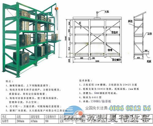 近年來,隨著蘇州貨架行業(yè)的蓬勃發(fā)展,模具貨架逐漸成為蘇州貨架行業(yè)的特色,具有承重力強、層板可抽出、吊模方便等特點,這和貨架各個部件設(shè)計組合具有重要關(guān)系,以下是對帶天車型抽屜式模具貨架的介紹: