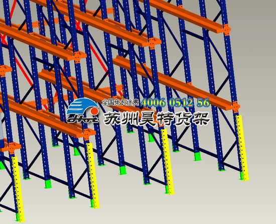 4)駛?cè)胧截浖苋褰咏M裝式結(jié)構(gòu),柱片為裝配式結(jié)構(gòu),靠墻區(qū)域的貨架總深度最多可以設(shè)計(jì)為7個(gè)托盤(pán)深度以內(nèi),中間區(qū)域可兩邊進(jìn)出的貨架總深度通常在9個(gè)托盤(pán)深度以內(nèi),以提高叉車(chē)存取的效率和可靠性。