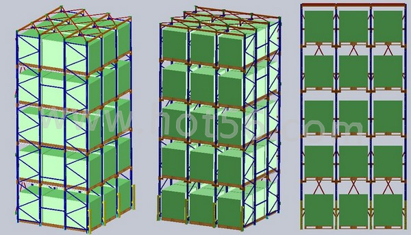 4)駛?cè)胧截浖苋褰咏M裝式結(jié)構(gòu),柱片為裝配式結(jié)構(gòu),靠墻區(qū)域的貨架總深度最多可以設(shè)計(jì)為7個(gè)托盤(pán)深度以?xún)?nèi),中間區(qū)域可兩邊進(jìn)出的貨架總深度通常在9個(gè)托盤(pán)深度以?xún)?nèi),以提高叉車(chē)存取的效率和可靠性。