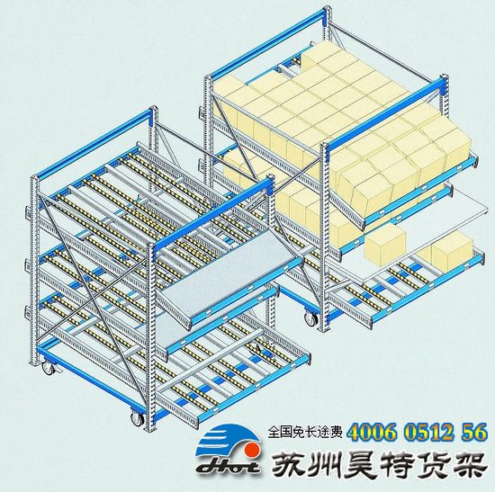 2、結合了中型貨架和重型貨架的特點,在前后梁之間增加流利條,角度大概4-5度左右,靠貨物本身的重量,由高的一端自動滑向低的一端,改善了中型貨架及重型貨架不能滿足先進先出的要求,提高了工作效率。