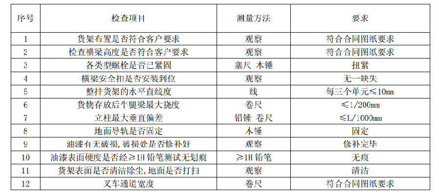 目前,貨架市場種類層出不窮,從最初的輕型貨架發(fā)展到重型貨架,再從重型貨架發(fā)展到穿梭車貨架,而不同的貨架廠商也都有自己獨到的生產方法,但是不管生產如何不同,但是驗收規(guī)范和標準卻是萬變不離其中。作為貨架采購人員或使用人員,都可以按以下的方法進行驗收。