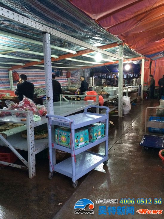 前幾天,昊特貨架公司的黃總應(yīng)邀攜市場(chǎng)部所有家人參加了某倉(cāng)儲(chǔ)貨架同行舉辦的孫子滿月喜宴,進(jìn)入宴會(huì)廳之前,步入眼簾的不是傳統(tǒng)的廚房用品,而是用三層小推車(chē)存放水果等臨時(shí)用品,而廚房則是用中型貨架的立柱、橫梁搭建起來(lái)的簡(jiǎn)易結(jié)構(gòu),二層蝴蝶孔貨架更是搖身一變,排成一排,組成臨時(shí)的備菜區(qū)。