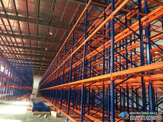 駛?cè)胧截浖苡捎趦Υ娴呢浳锉容^密集,穩(wěn)固性要求極高,因此所需要的貨架配件相對較多,通過配件與貨架立柱片的連接,令貨物能安全密集地存放在導(dǎo)軌上,最大程度地利用空間。駛?cè)胧截浖艿呐浼ǎ号M龋▽?dǎo)軌與貨架立柱的主要連接件,分單面與雙面)、導(dǎo)軌(貨物存放的主要支承擱層)、頂梁(貨架立柱的連接穩(wěn)固件)、頂拉(貨架立柱的連接穩(wěn)固件)、背拉(貨架立柱的連接穩(wěn)固件,用于貨架單向排布時)、后梁(通道每層末端橫梁,防止托盤脫離導(dǎo)軌進而滑落地上)、護柱(叉車進入巷道時貨架保護件)等。