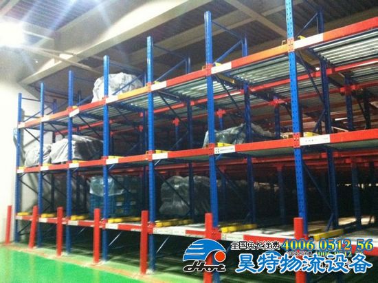 重力式貨架由托盤式貨架演變而來,采用滾筒式軌道或底輪式托盤,貨架結(jié)構(gòu) 與橫梁式貨架相似,只是在橫梁上安裝滾筒式軌道,軌道呈3-5度傾斜,適用于大批量、同類貨物的先進(jìn)先出存儲作業(yè),空間利用率很高,尤其適用于有一定質(zhì)保期、不宜長期積壓的貨物。