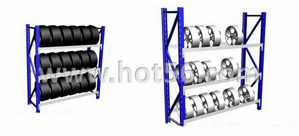 1、輪胎、輪圈架:即將中型貨架的層板取出,輪胎、輪圈直接置于橫梁之上。