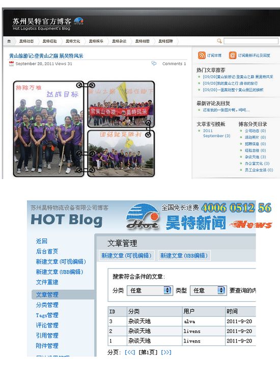 本公司消息:金秋的九月,為了豐富公司企業(yè)文化建設,蘇州昊特官方博客于2011年9月21日正式開通啦!在博客開通的同時,為了提高員工的參與積極性,公司還將舉辦了員工博客征文大賽。具體參賽及評比規(guī)則請查看后續(xù)報道,相信通過此次活動的舉辦,一定可以為蘇州昊特的企業(yè)文化揮上了濃墨重彩的一筆!