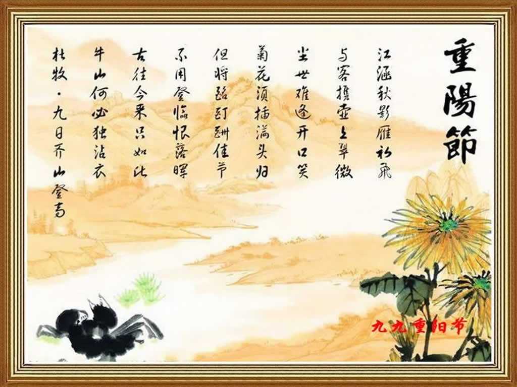 “金秋十月爽,九九話重陽。日月兩重歸,相映地久長!農(nóng)歷九月九日,為傳統(tǒng)的重陽節(jié)。因為古老的《易經(jīng)》中把“六”定為陰數(shù),把“九”定為陽數(shù),九月九日,日月并陽,兩九相重,故而叫重陽,也叫重九,古人認(rèn)為是個值得慶賀的吉利日子,并且從很早就開始過此節(jié)日。九九重陽,因為與“久久”同音,九在數(shù)字中又是最大數(shù),有長久長壽的含意。今天的重陽節(jié),被賦予了新的含義,在1989年,我國把每年的九月九日定為老人節(jié),傳統(tǒng)與現(xiàn)代巧妙地結(jié)合,成為尊老、敬老、愛老、助老的老年人的節(jié)日。