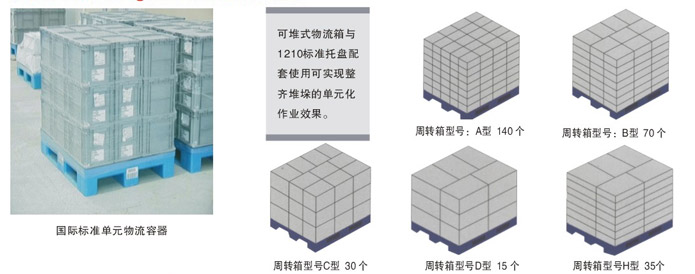 | 國際標(biāo)準(zhǔn)單元物流容器 | 方便一體化運(yùn)輸 | 與流利條貨架等配合方便物料揀選 |