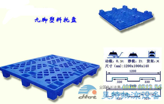 載物九腳塑料托盤,即根據(jù)塑料托盤的外形而言的,此類型的塑料托盤底部為九腳型,因而得名九腳塑料托盤。此類一般承載都比較輕,不適合于上貨架或者轉(zhuǎn)載大重量的貨物,九腳托盤一般都作為倉庫輕型貨物墊倉板,叉車周轉(zhuǎn)較輕貨物使用。此類托盤表面形狀有:平面與網(wǎng)格之分。