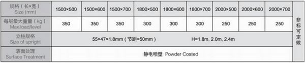 中型蝴蝶孔貨架規(guī)格圖: