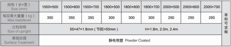 中A貨架規(guī)格表
