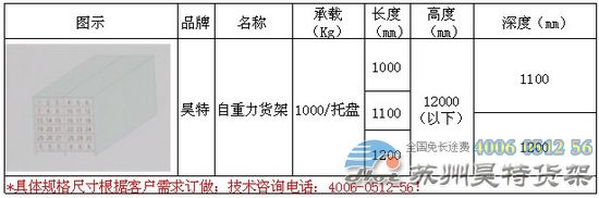四、自重力貨架規(guī)格表
